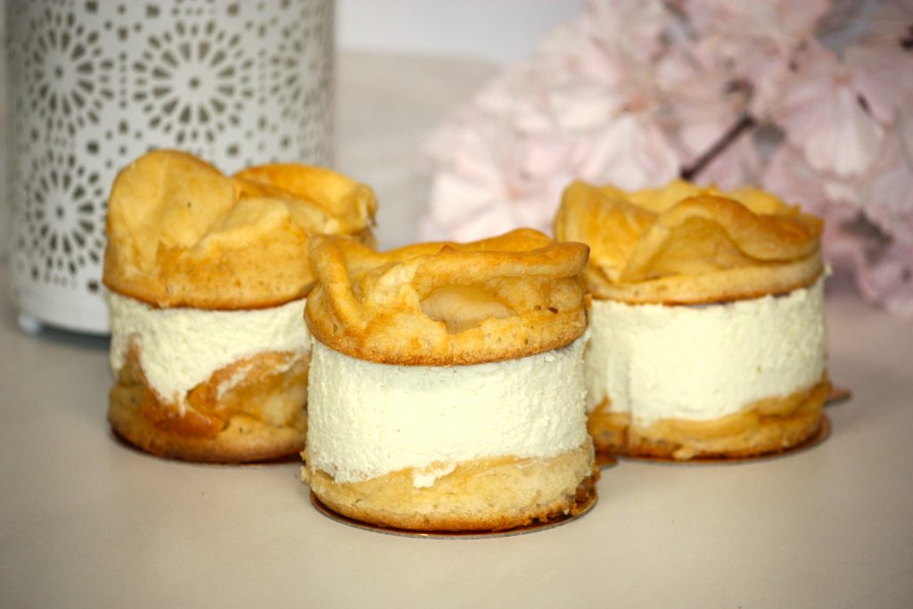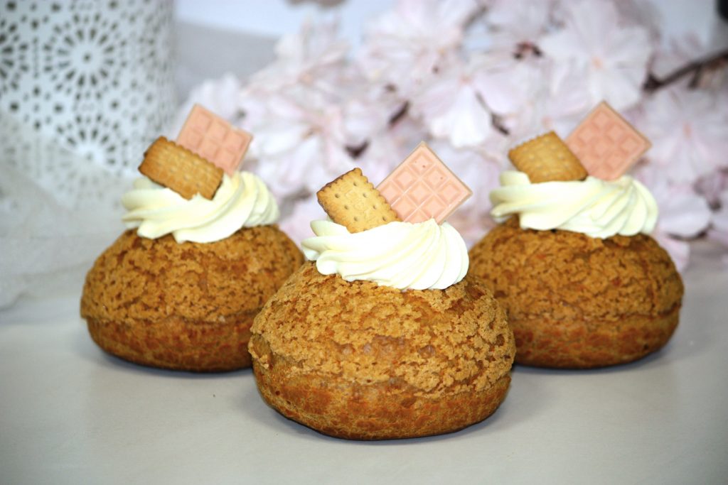 Ptyś mini z kruszonką-biała czekolada z czarną porzeczką