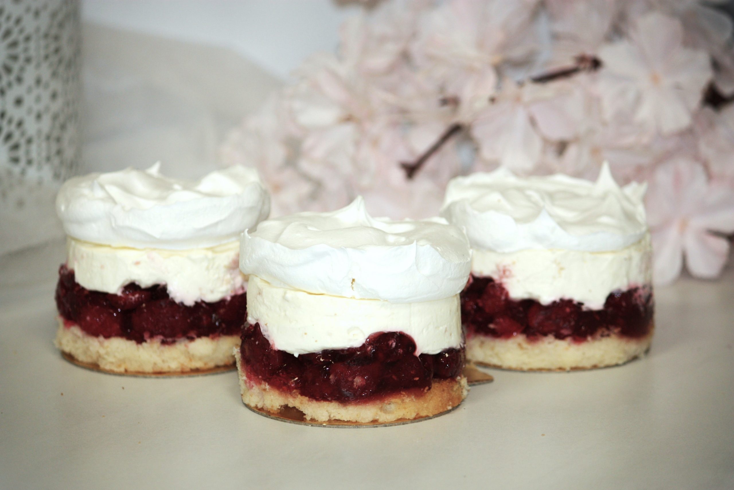 (biszkopt, maliny w galaretce, krem śmietankowy, beza)