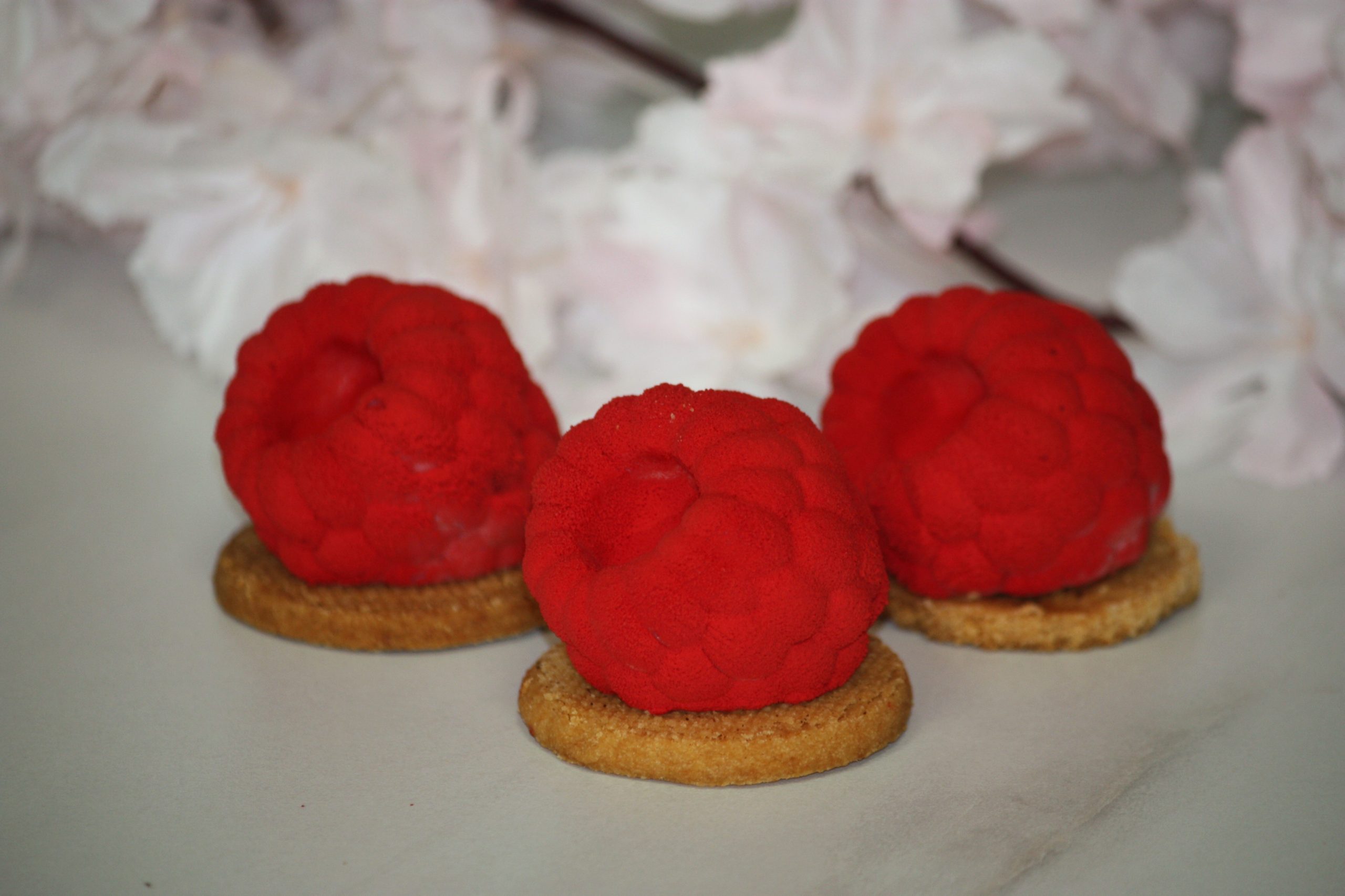 (mus malinowy, żelka z malin, biszkopt)